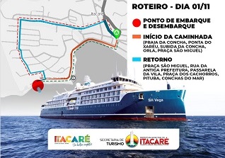 “Receber em Itacaré, mais uma vez, o SH Vega, navio da Swan Hellenic, é algo marcante. O cruzeiro de luxo navega pela Bahia, saindo de Salvador, realizando paradas em Itacaré, Trancoso e o Arquipélago de Abrolhos, seguindo para o Rio de Janeiro. Isso nos coloca em um nível alto para quem busca turismo de experiência e costuma viajar em alto padrão”, destacou o secretário.